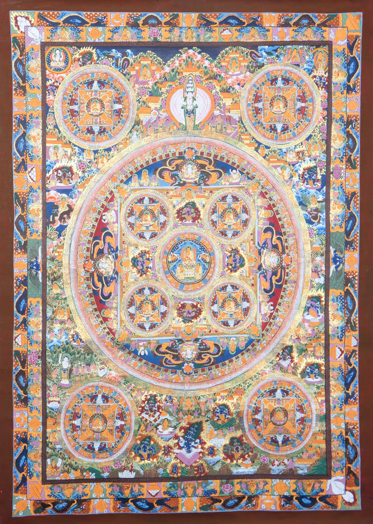 Mandala is a circle which is a device for the Tantric meditation. It is a visual aid for concentration and introversive meditation leading to the attainment of insights and to activation of forces culminating in Siddhi supernatural forces. The Mandala is the graphic representation of this process. It is not only theoretical but practical also as an operational scheme involving a clear plan for practical realization of the process within oneself. It thus becomes an instrument (Yantra).