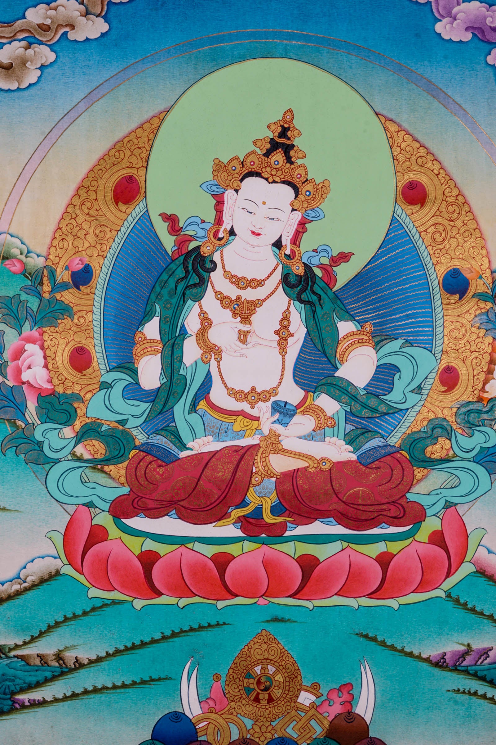Vajrasattva Thangka can be a great tool for meditation to transform and purify our Body, Speech and Mind. These art can also be a very beautiful wall hanging decoration ideas for your home and office. All Thangka Paintings at Lucky Thanka are genuine hand paintings from Nepal painted by highly skilled lama artist.