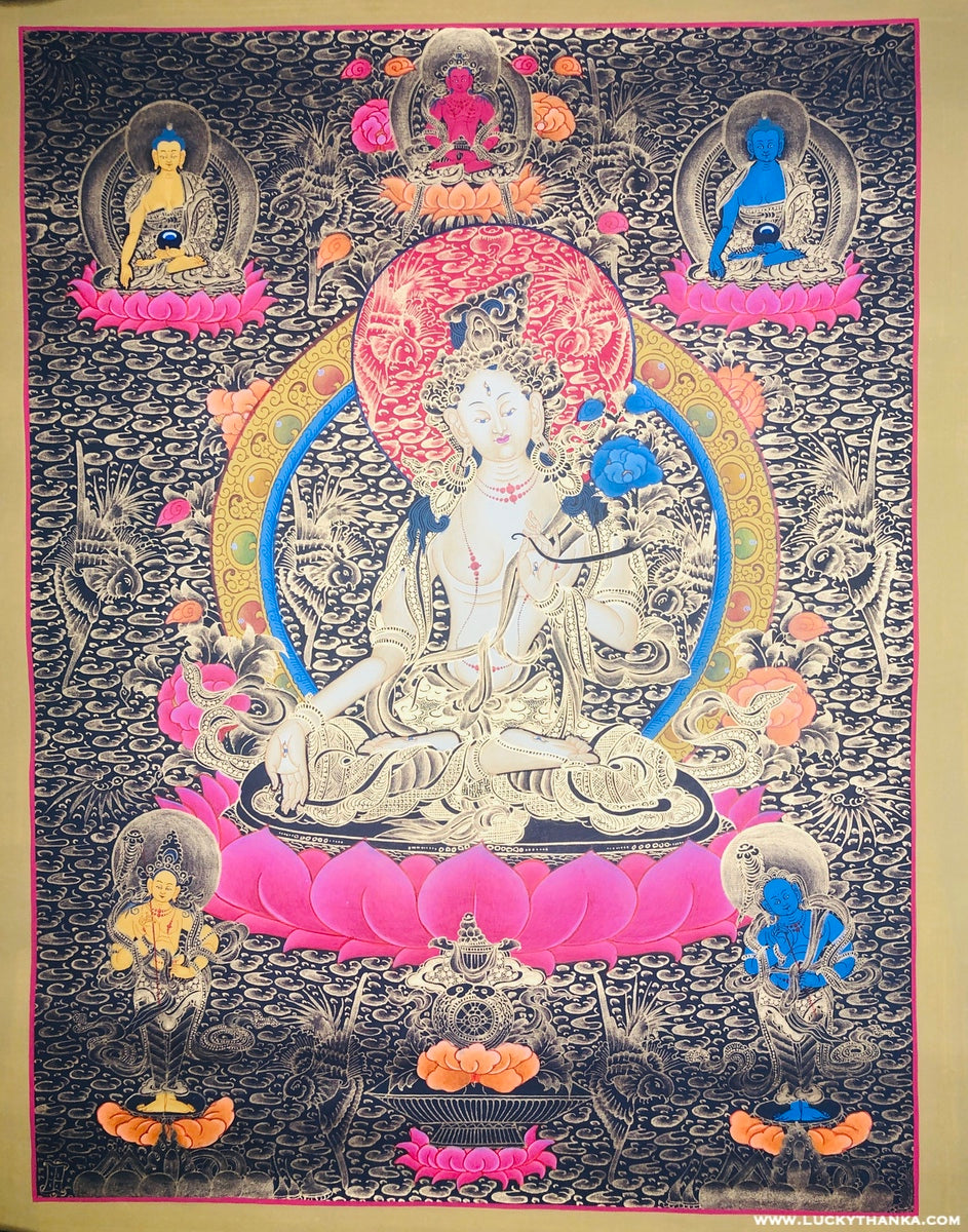 - Rituals and Offerings: These thangkas are used in rituals and offerings dedicated to White Tara, where practitioners seek her blessings for health, longevity, and protection from harm.