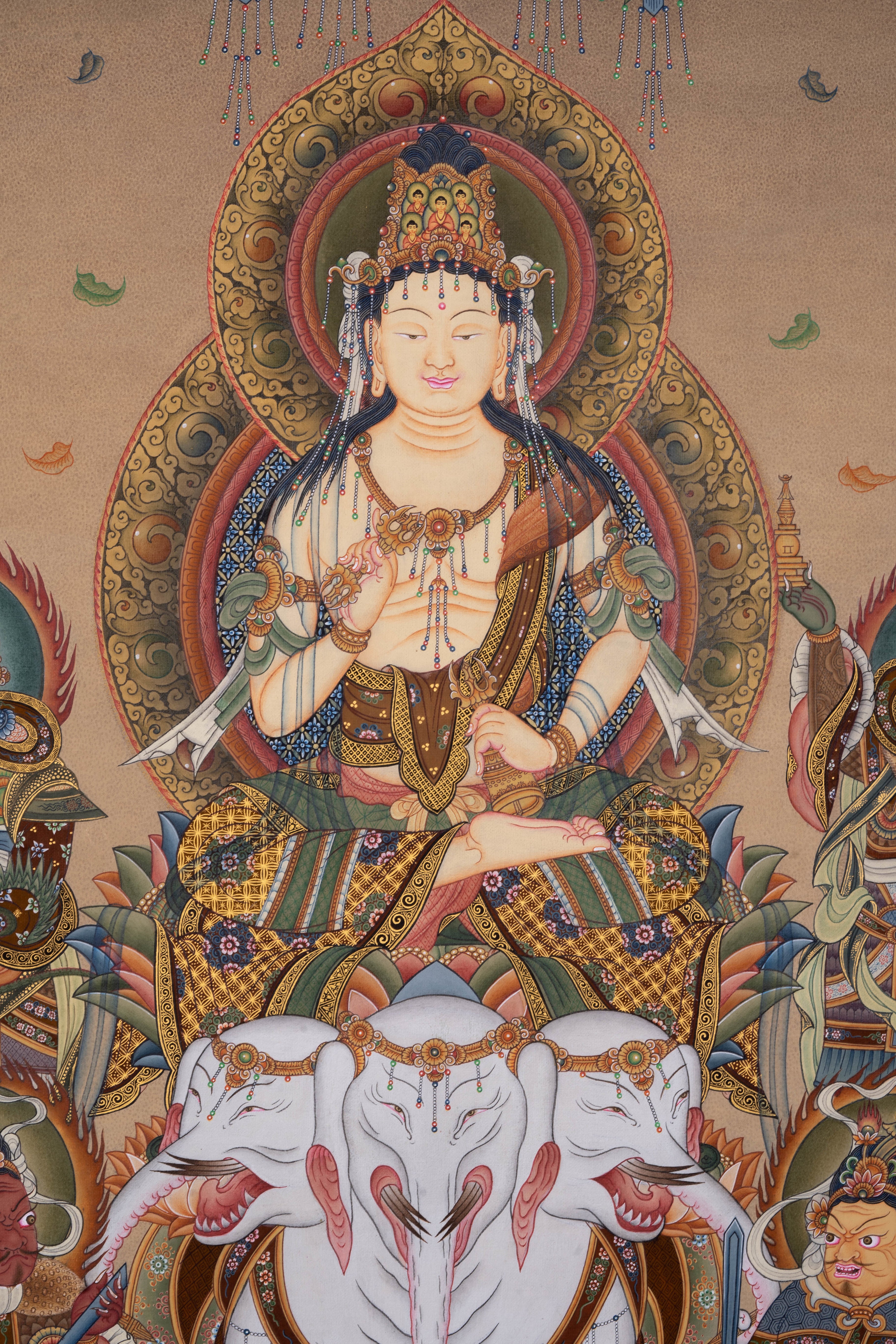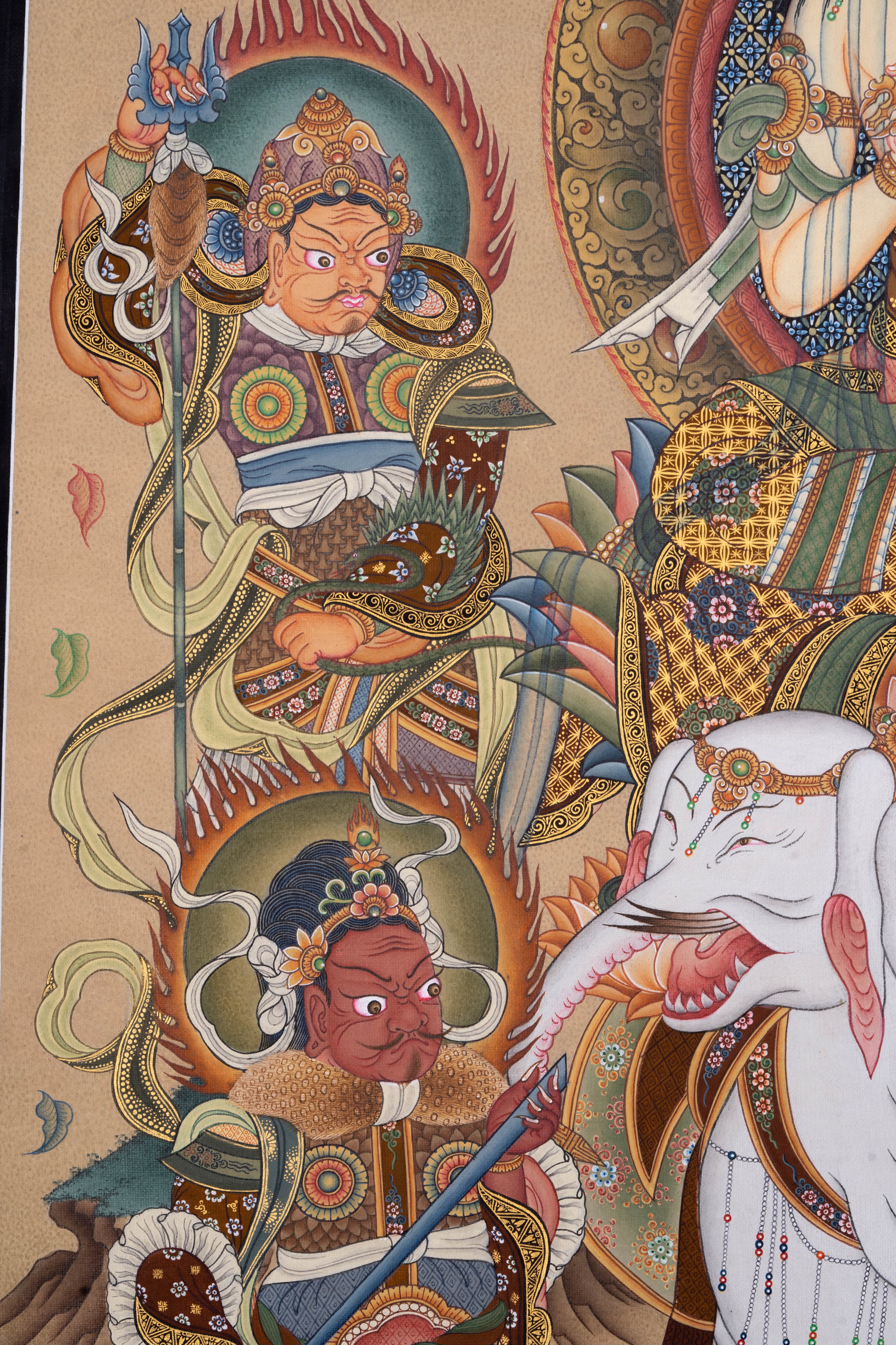 All our Thangka paintings and mandala. This 100% hand-drawn Thangka painting in Kathmandu Valley, Nepal. Thangka painting can be decorated as an elegant and eccentric wall hanging in your home or office being a center piece of attention. It can also be placed on your family altar for meditation purposes as well as spiritual and emotional healing, attracting benevolent energy of the Buddhist art. This is one of our best collection high quality Buddha Thangka art.