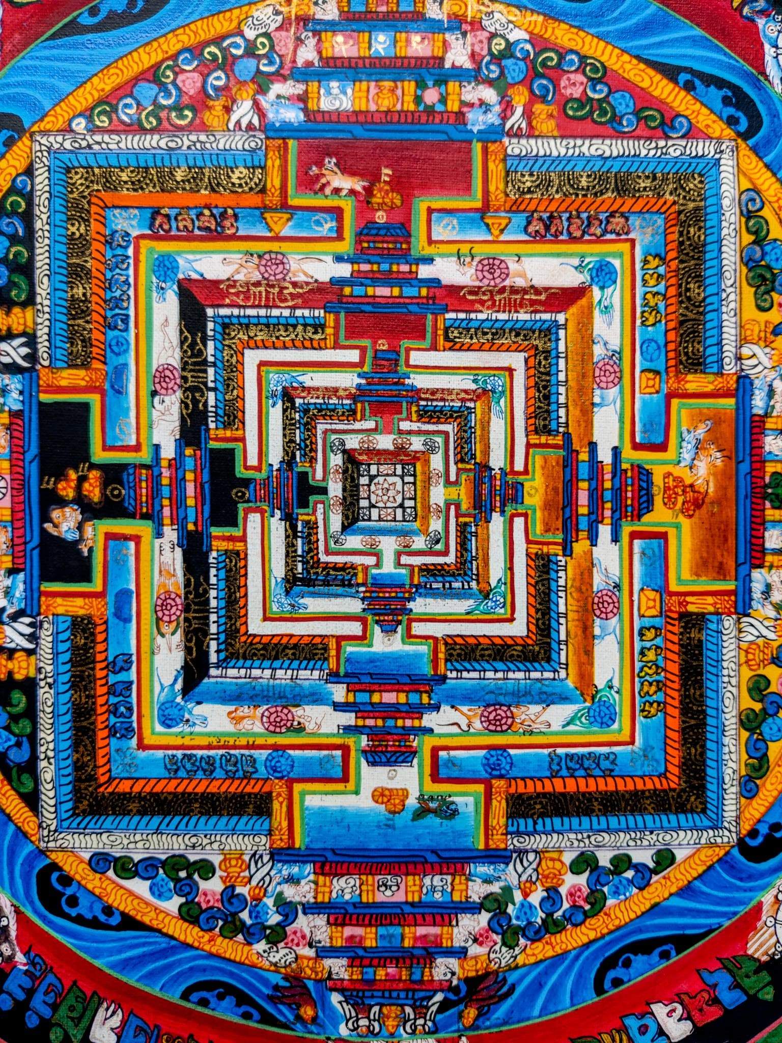 Thangka Painting of a Kalchakra Mandala for Spirituality, Meditation or for your home and family. All Thangka Paintings at Lucky Thanka are genuine hand painted from Nepal by highly skilled lama artists. Painted on cotton canvas using natural stone color and other materials like gold, silver other semi precious minerals. The Kalchakra Mandala can be a great tool for meditation to transform and purify our Body, Speech and mind. These art can also be a very beautiful wall hanging decoration ideas for your home and office.